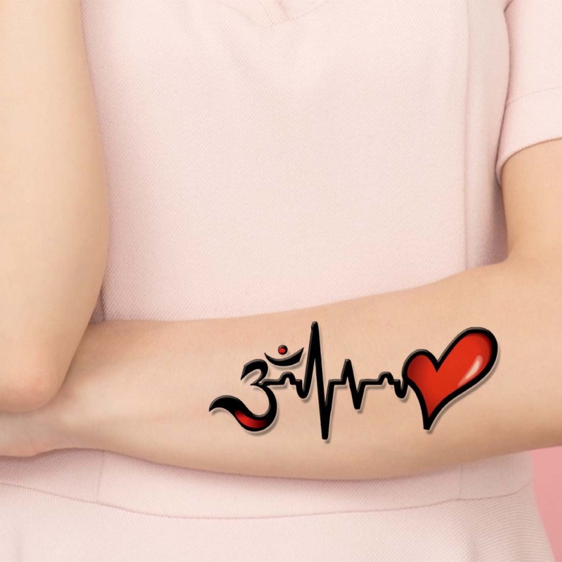 10. Voorkoms Om With Heart Tattoo Waterproof Men And Women Temporary Body Tattoo (Om With Heart Tattoo) | Shopee India